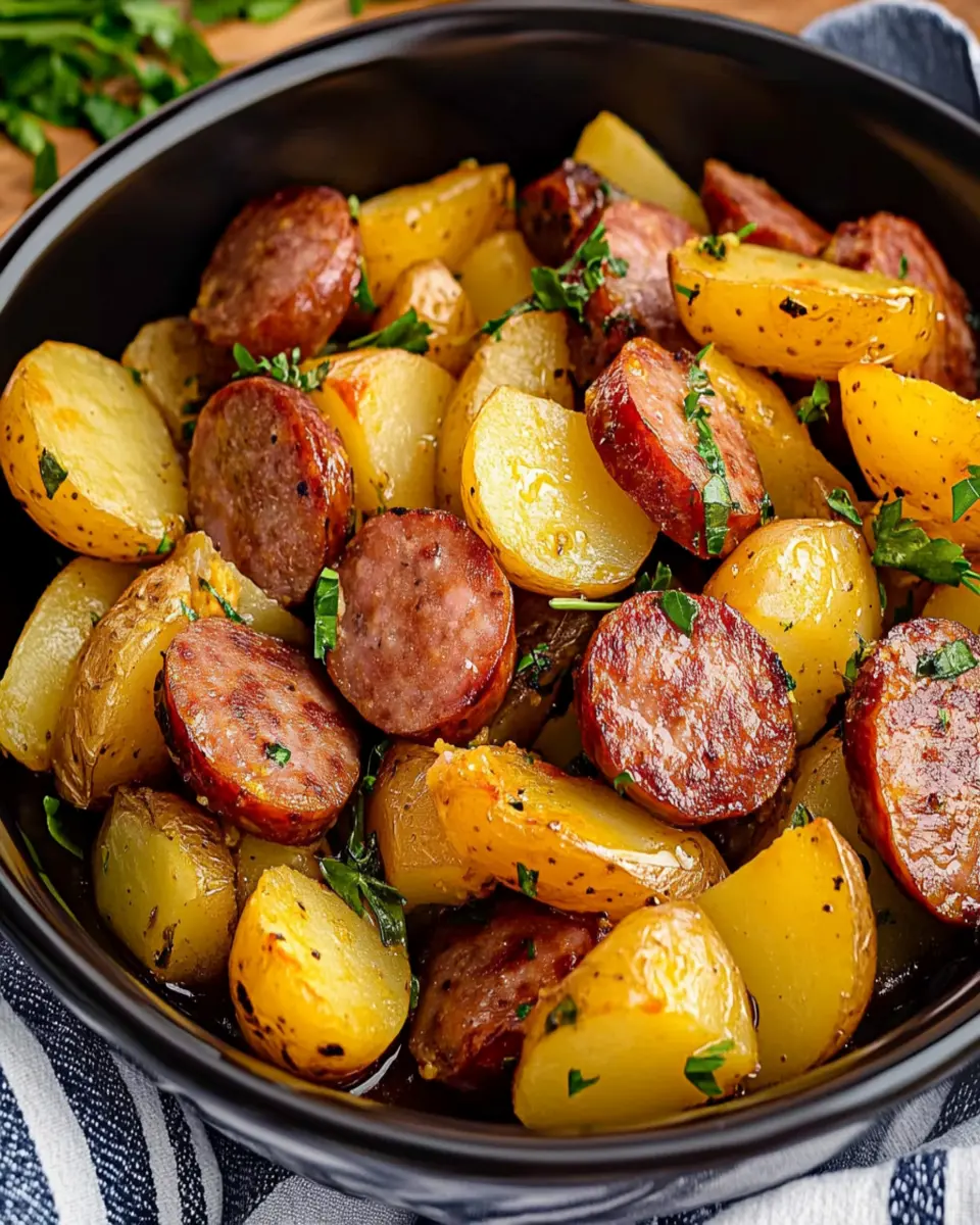 A comforting and flavorful dish made with sausage and potatoes, perfect for a busy day.