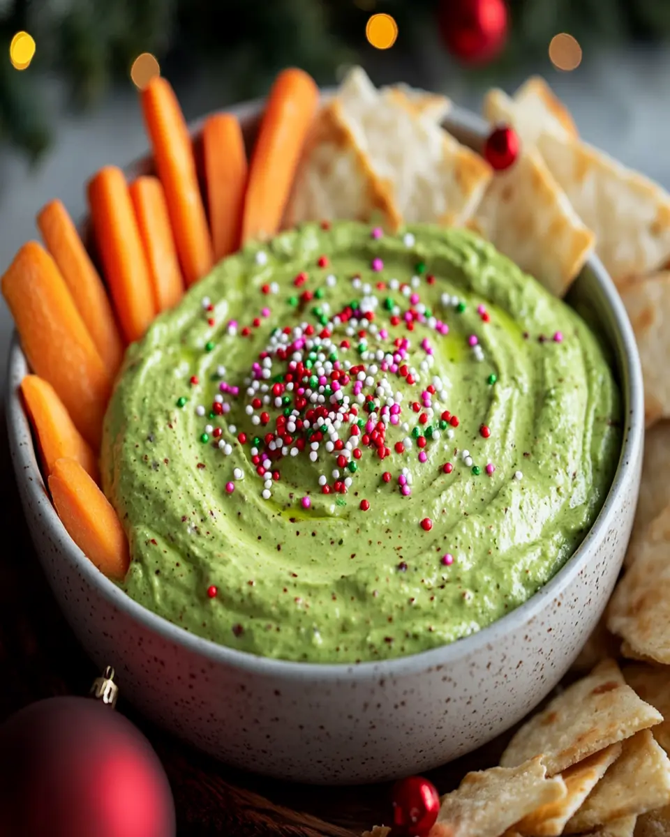 A fun and festive dip perfect for holiday gatherings, inspired by the Grinch!