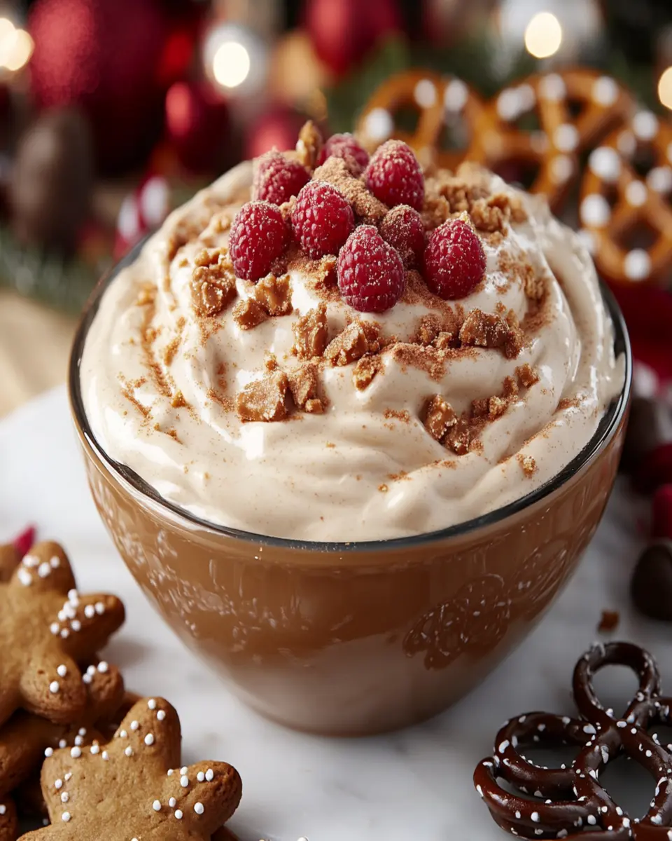 What makes this dip stand out is its rich combination of spices, including cinnamon, ginger, and cloves. Each bite takes you on a nostalgic journey reminiscent of holiday baking traditions. The creamy texture of this dip pairs perfectly with gingerbread cookies, fresh apples, or crispy pretzels, making it a versatile option for any gathering.