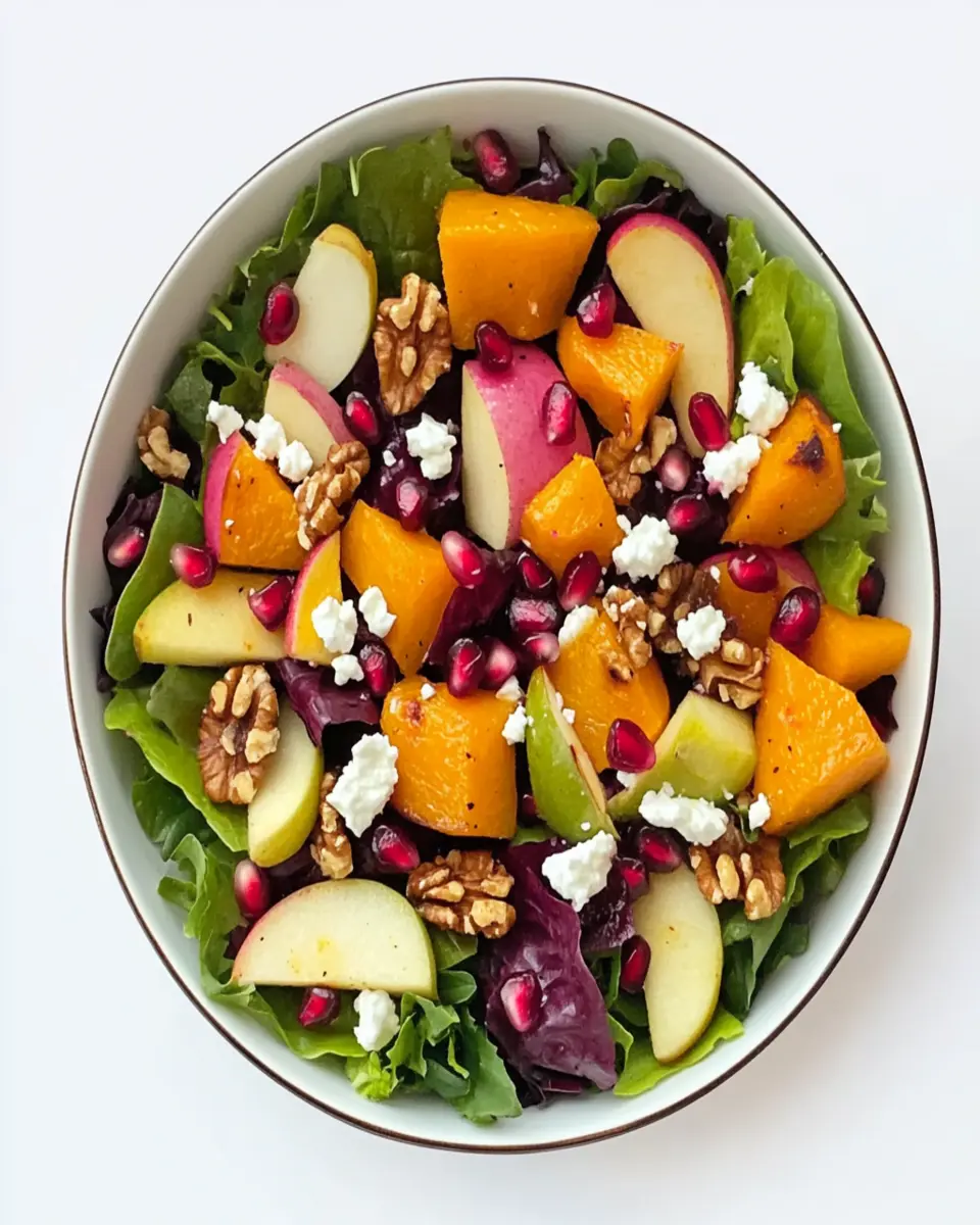 This combination of ingredients creates a delicious fall salad that celebrates the season’s harvest and offers a delightful mix of tastes and textures. Enjoy this dish as a light meal or a perfect side for any autumn gathering.