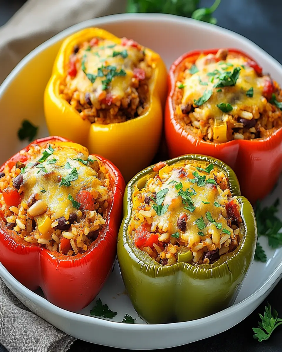 Savory stuffed bell peppers are a comforting delight that combines flavor, nutrition, and convenience in one dish. Perfect for busy weeknights or family gatherings, this recipe not only satisfies your hunger but also warms your heart. With its versatile filling options, you can easily adapt it to suit any dietary preference, making it a go-to meal for everyone. Plus, the ease of preparation means you can have a delicious, homemade meal ready in just 45 minutes. So why not gather your ingredients, bring some color to your table, and enjoy the delightful experience of making and sharing these savory stuffed bell peppers? Cook, save, and share this recipe to spread the joy of comfort food!