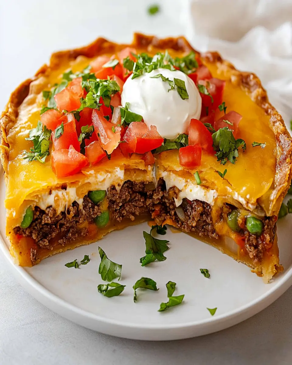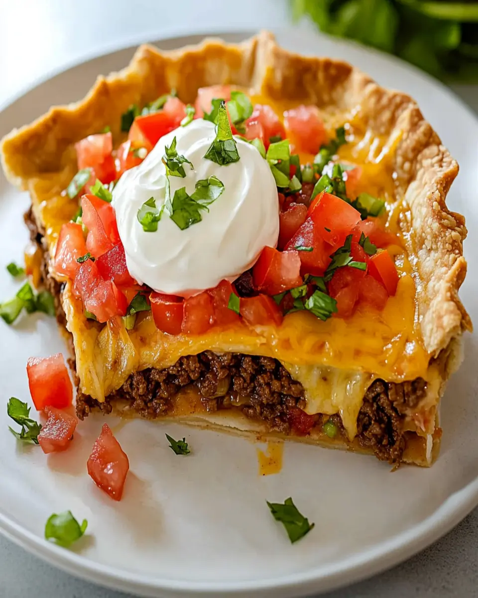 A delicious and easy-to-make Taco Pie that combines the flavors of tacos in a comforting pie form.